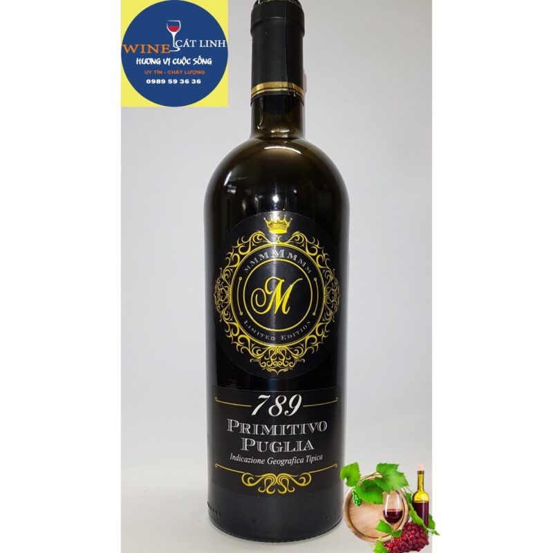 Rượu M 789 Primitivo Puglia được làm từ hoàn toàn giống nho Primitivo trồng ở vùng Puglia nước Ý. Đây là một trong những vùng trồng nho cho ra đời nhiều vụ Primitivo ngon nhất thế giới. Vì sở hữu những đặc tính đáng quý cho một chai rượu vang nước đỏ với mức giá trung bình. Chai rượu có màu đỏ đậm quyến rũ, hương vị mạnh mẽ. Đặc tính tự nhiên gắn với tannin dầu và dai. Vị rượu kéo dài và dai dẳng, lớp rượu lan tỏa tạo ấn tượng mạnh.