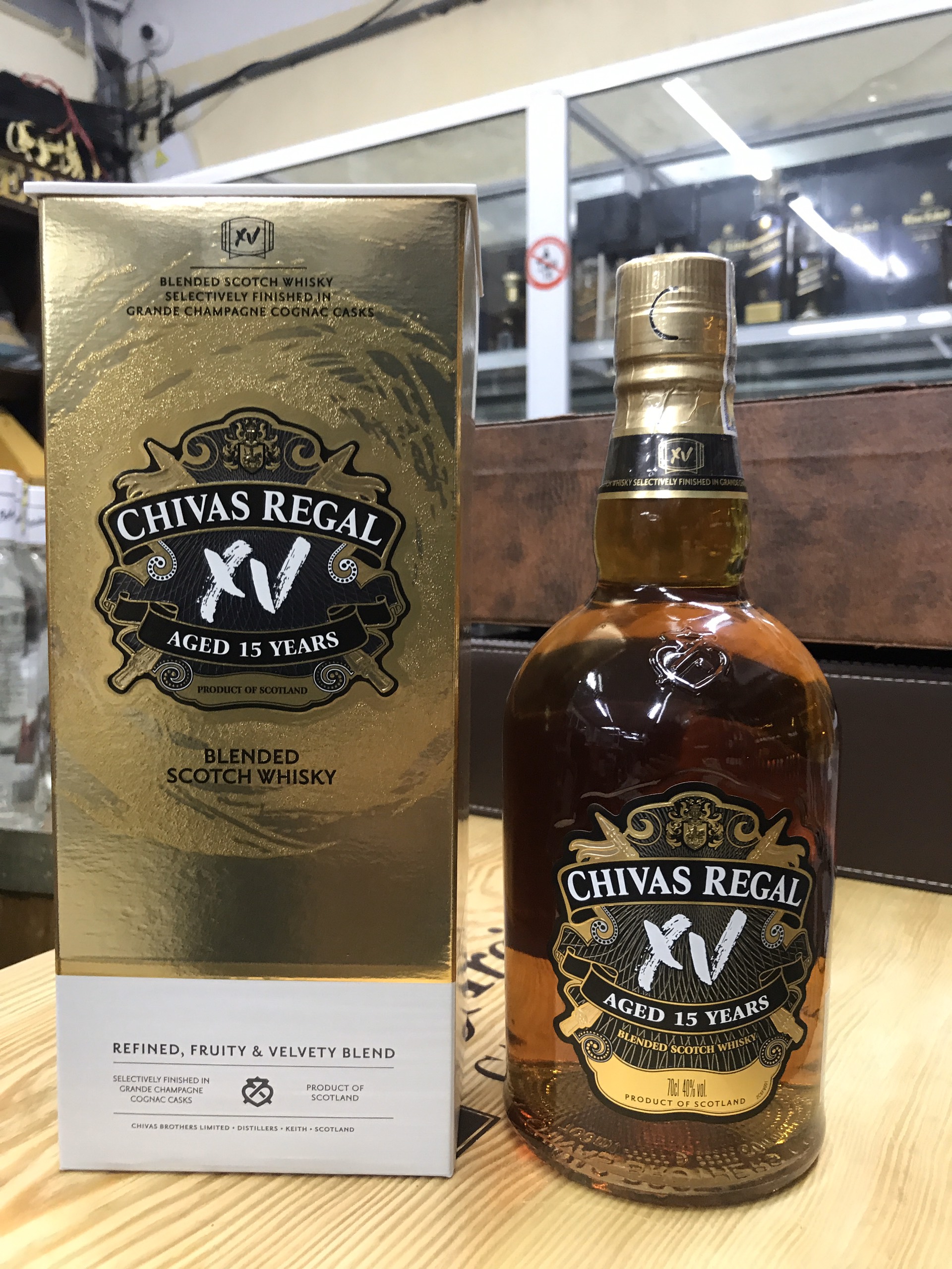 Rượu Chivas XV hay Chivas 15 năm tuổi _ Dòng sản phẩm hoàn toàn mới , được nhà Chivas ra mắt vào đầu năm 2018 , đây là loại rượu được ủ lần cuối cùng trong thùng gỗ sồi Grande Champagne của vùng Cognac nước Pháp ( Champagne Cognac Casks ) . Chivas 15 năm có hương vị rượu Whisky độc đáo là vị ngọt tuyệt vời của Trái cây như Táo đỏ , Cam , Nho khô . Dư vị nhẹ nhàng , tròn đầy với ghi chú của Vanilia . Đây là loại rượu cho bạn những trải nghiệm tuyệt vời trong những bữa tiệc đêm