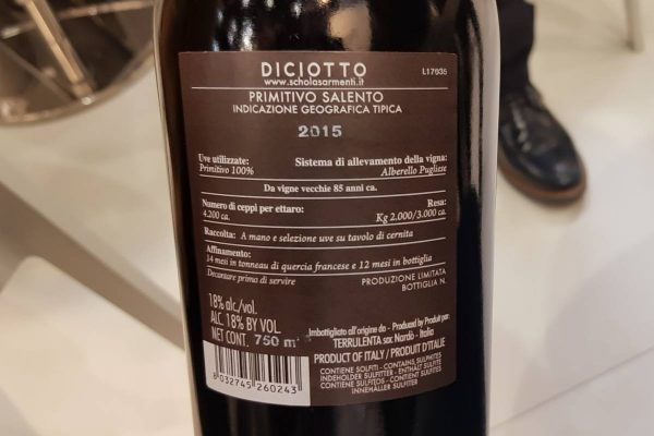 Rượu vang Ý Diciotto IGT Primitivo Salento được biết như một dòng rượu vang chén thánh 18 độ nổi tiếng cao cấp, được sản xuất giới hạn của hãng rượu Schola Sarmenti với những gốc nho trên 80 năm tuổi, làm từ những trái nho già với hương vị nồng nàn , mạnh mẽ được trồng trên vùng trồng nho nổi tiếng Salento.